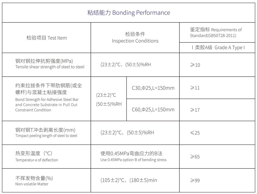 各種建筑結(jié)構(gòu)中的鋼筋埋植與錨栓錨固、各種設(shè)備基礎(chǔ)的錨固,礦山巷頂、壁部位的錨固支護,鐵路、鐵軌的錨固及鐵軌邊緣錨固、水利設(shè)施、碼頭、公路、橋梁等工程的錨固、幕墻及化工設(shè)備、管道、廣告牌等安裝錨固。